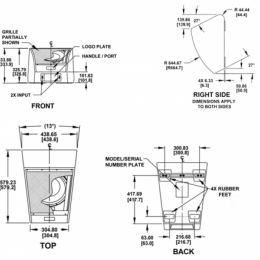 尺寸(英寸/毫米):高度(最小用作舞臺監聽):11.36/288.5,寬度(前):10.06/256,寬度(后):14.26/362,深度:18.41/468