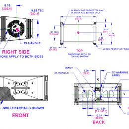 換能器: 低頻 - 2x10英寸錐盆;中頻–2x7英寸,錐盆;高頻 – 2x1英寸開(kāi)口,1.75英寸音圈釹質(zhì)壓縮驅(qū)動(dòng)單元:負(fù)載:低頻 – 相位對(duì)齊(Phase AlignedTM);中頻–號(hào)角負(fù)載;高頻–號(hào)角負(fù)載帶輻射相位塞(Radial Phase PlugTM)