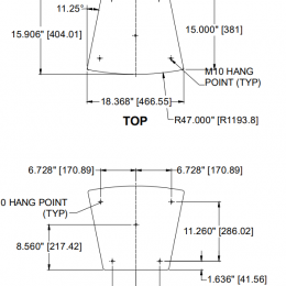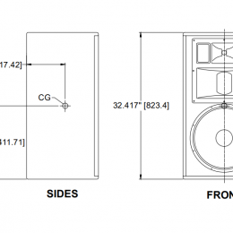 音 箱系統是三分頻全頻、梯形、開孔低頻設計,擁有1個15英寸的低頻錐盆驅動、一個號筒負載6.5英寸中頻換能器和1個1英寸高頻驅動,且驅動都安裝在 60°H x 40°V可旋轉號筒上。還有一個NL4-兼容鎖定接頭與接線板平行。音箱箱體是由18mm、11層交錯層壓樺木和鋼制的開孔網罩構成,并有13個M10懸 掛/安裝插入點。系統的振幅響應是55Hz至18kHz(-10dB),輸入能力為40V RMS。在100Hz至12.5kHz間,靈敏度是100dB@1W/1m。標稱覆蓋范圍在垂直方向是60°Hx40°V。音箱的尺寸是32.4英寸 (823mm)高x18.4英寸(467mm)寬(前)x12.4英寸(315mm)寬(后)x15.9英寸(404mm)深。音箱系統的重量是59.5 lbs(27kg)。