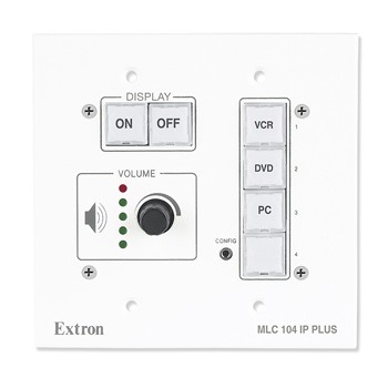 帶有內置 IP link 以太網控制的 Extron MLC 104 IP Plus Medialink® 控制器使 用方便,是一款適用于任何小型教室或會議室的控制面板。其設計用于控 制各種小型音視頻系統,并可執行基于 Web 的遠程診斷、視音頻資源管理 和系統支持。MLC 104 IP Plus 可對所有系統的控制接口進行標準化,使基 于投影機的系統和基于切換器的系統都能方便地使用。標準化也使設置和 維護的工作更加容易。