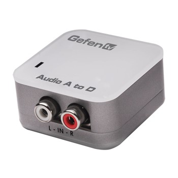 的gefentv模擬數字音頻適配器的轉換模擬左/右RCA式音頻連接到數字S/PDIF或Toslink輸出。該裝置是緊湊,易于安裝,并在各種操作條件下工作。