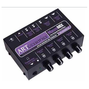 它有2個1/4"輸入接口,為功率放大器配置的3對高增益立體聲RCA輸入接口(混合為單聲道)。MacroMIX有2個RCA輸出接口和1個1/4"輸出接口,12V DC外部電源供電。