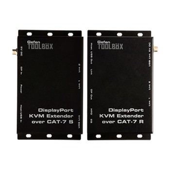DisplayPort KVM延長器在cat-7允許一個高清顯示器,安裝鍵盤,鼠標,USB外設和其他的高達100英尺(30米)遠離電腦,使用兩個或三個cat-7電纜。分辨率高達1920 x 1200(WUXGA)或1080p全高清當用兩cat-7電纜,和高達2560 x 1600(WQXGA)當使用三電纜可以支持。HDCP也支持。使用USB 2時,480 Mbps的數據速率的支持。這個擴展也向下兼容USB 1.1。