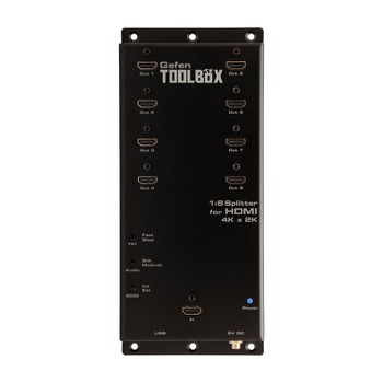 的gefentoolbox 1:8分配器HDMI 4K x 2K超高清分配一個A / V源八超高清顯示的同時沒有質量或分辨率損失。本產品適用于任何超高清源和支持分辨率高達4K(3840 x 2160 @ 60Hz 4:2:0)和4K影院(DCI)(4096×2160 @ 24或30Hz 4:4:4)。它的特點是快速切換技術,并支持HDCP,顏色深,3DTV的通過,如Dolby TrueHD和DTS-HD audioare支持無損音頻格式。