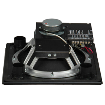 音箱系統是兩分頻全頻倒相式吸頂設計,一個鋁合金構架的12“低頻單元和一個1”開口高頻驅動同軸安裝在60°x60°號角上。音箱系統安裝在黑色的鋼制障板上。驅動連接了一個分頻頻率為2kHz的分頻器,并有過流保護電路。連接是通過螺釘終端阻隔帶。系統的振幅響應是80Hz-12.5kHz(+/-4dB),輸入能力是40V RMS,在標稱阻抗8歐下,是97dB靈敏度@2.83V/1m。標稱覆蓋在1.6kHz至12.5kH范圍內是60°H x 60°V。箱體尺寸是14.625”x14.625”x6.938”,重量為17.2 lbs。